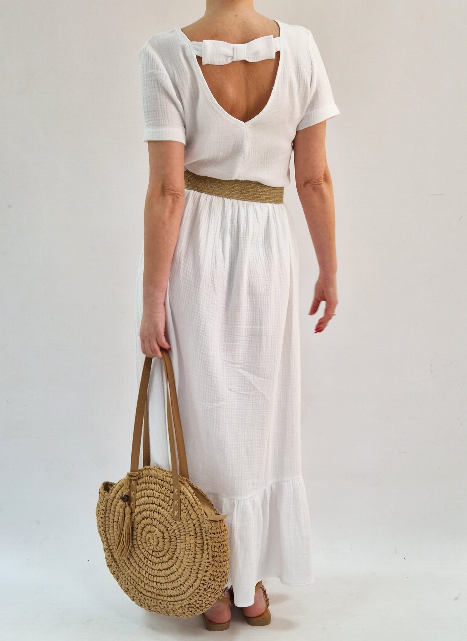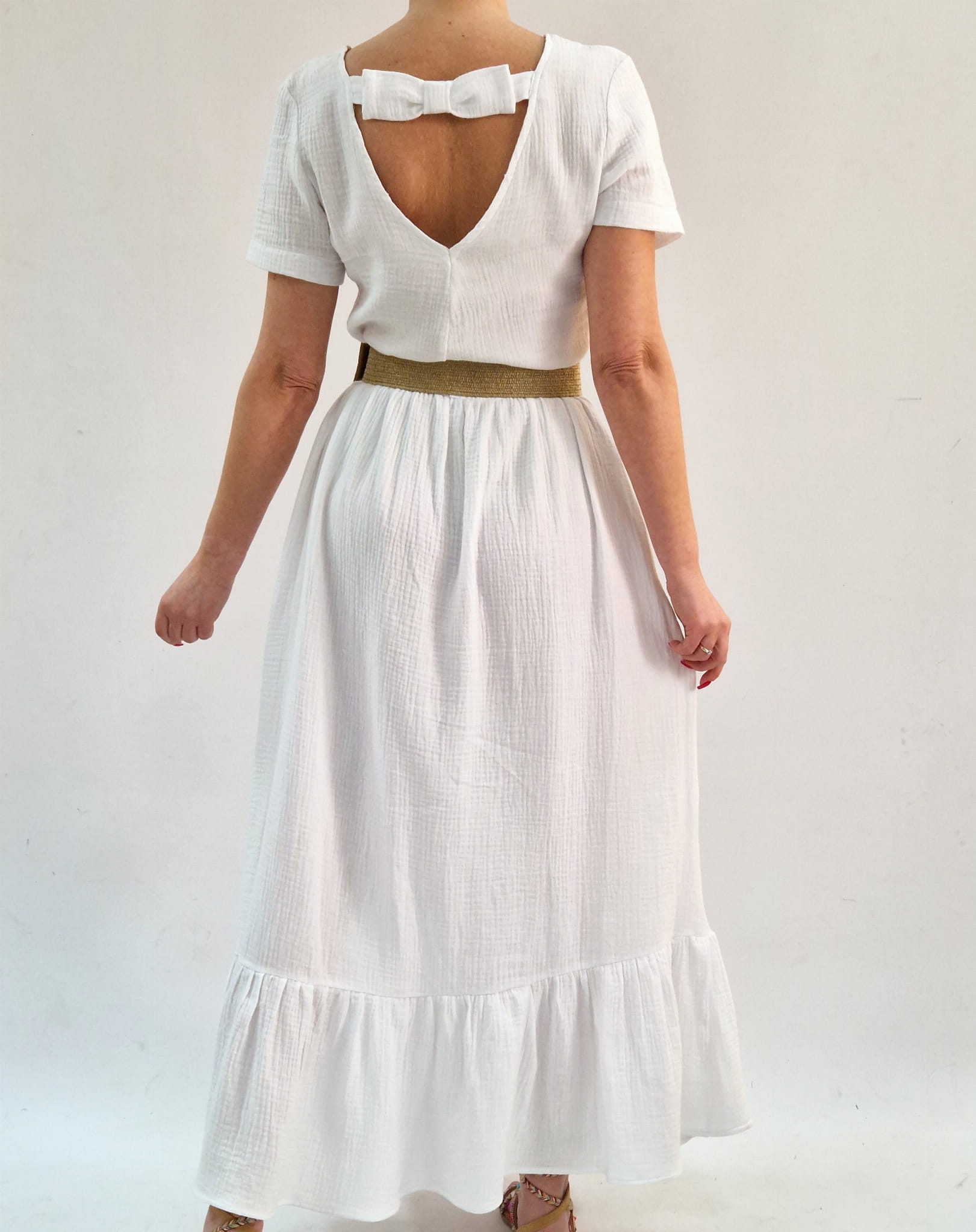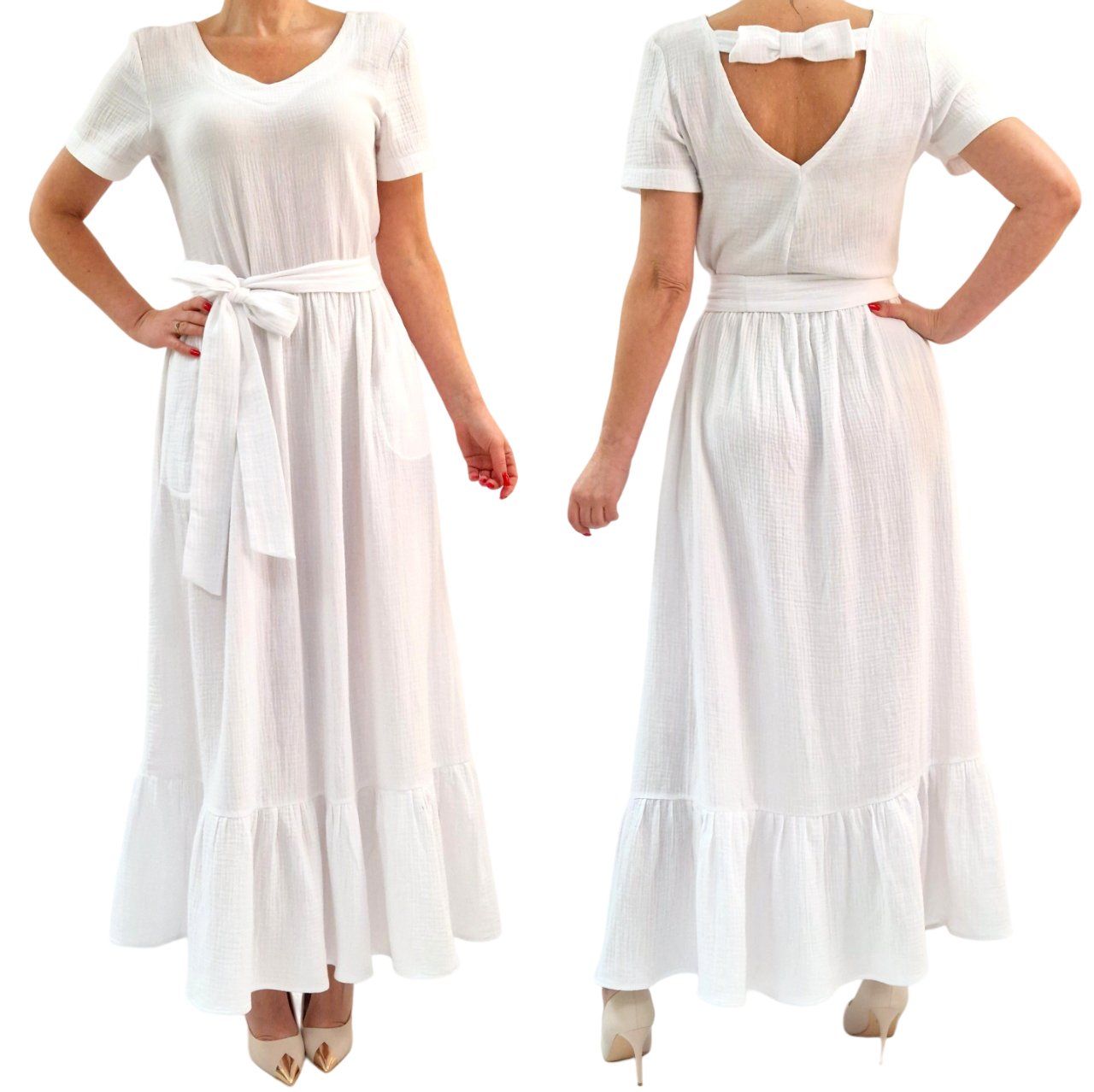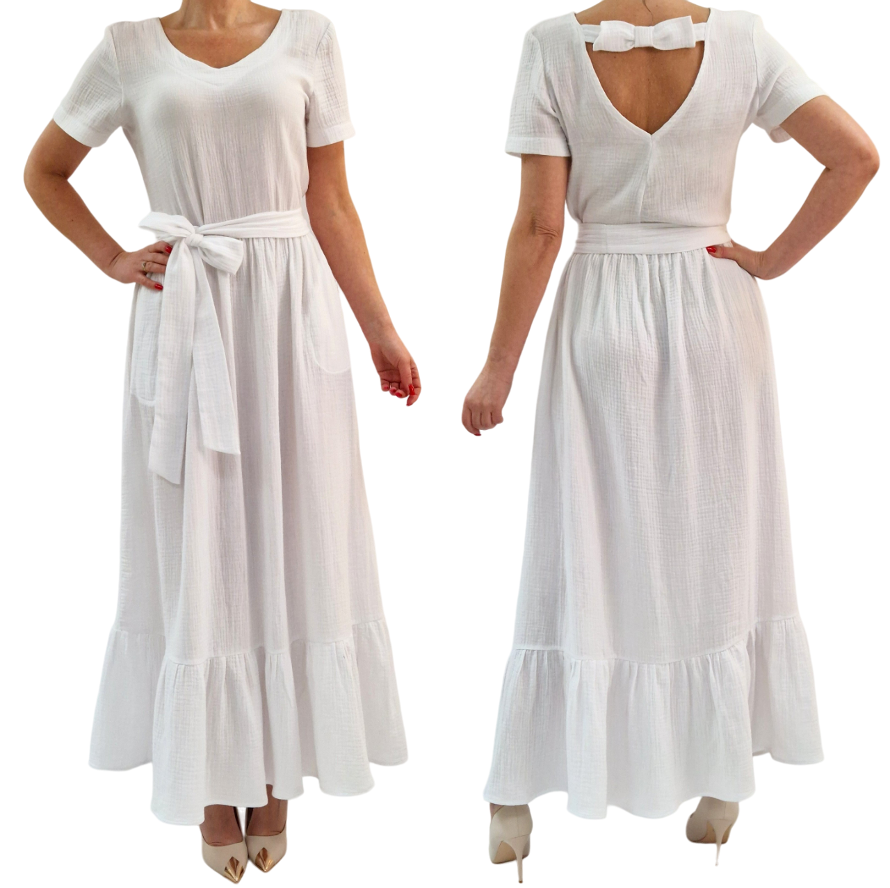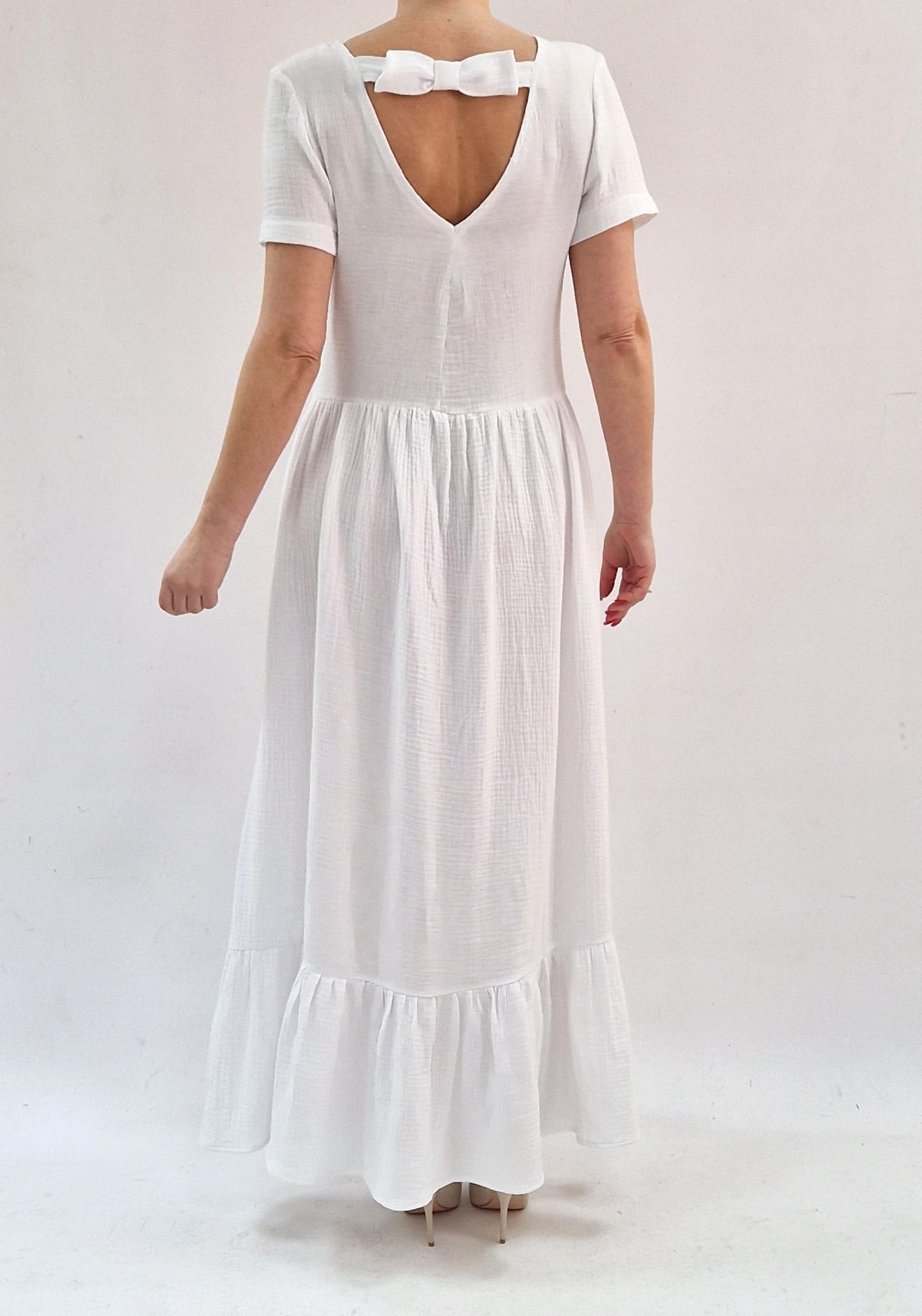 WYGODNA BIAŁA SUKIENKA USZYTA Z BAWEŁNIANEGO MUŚLINU