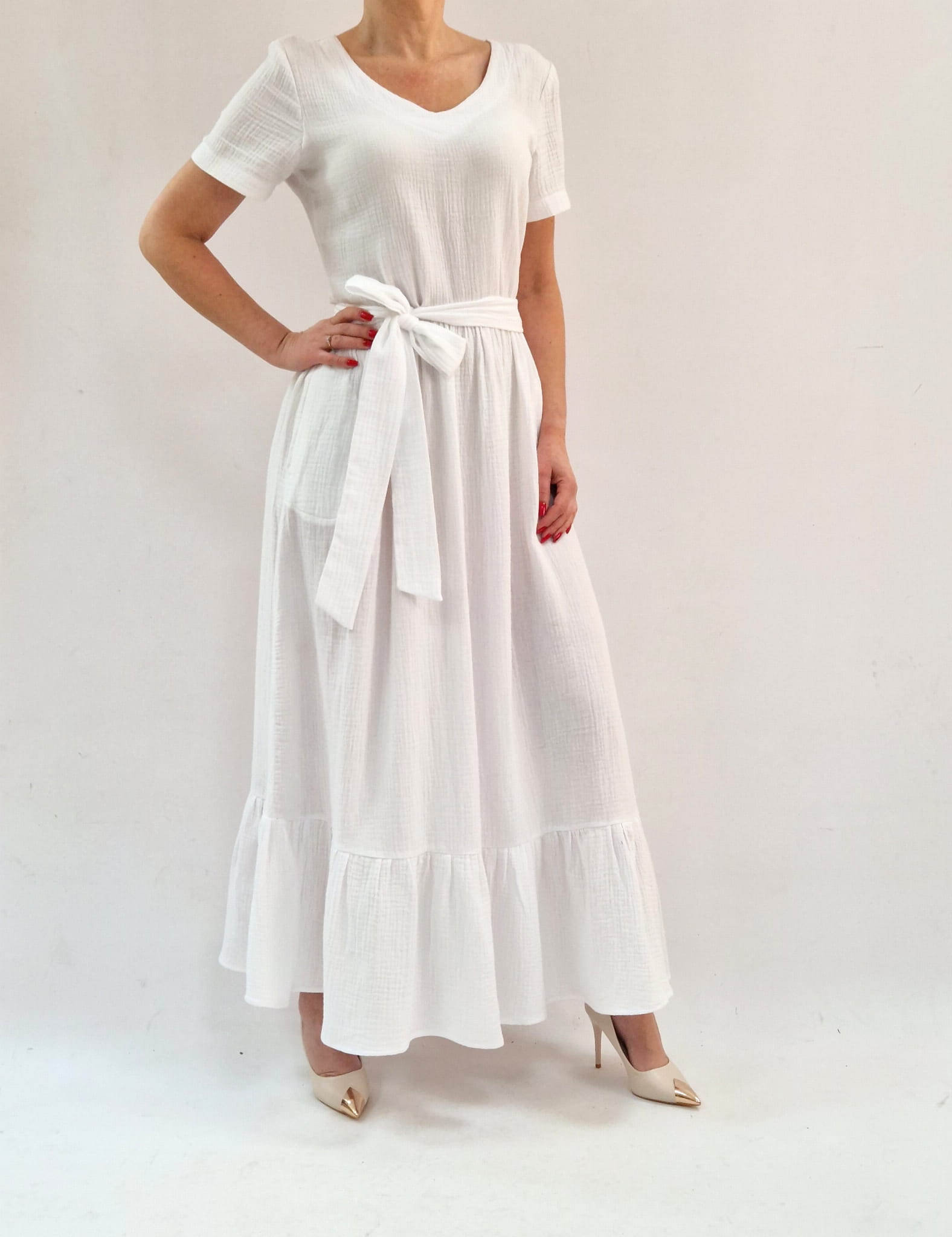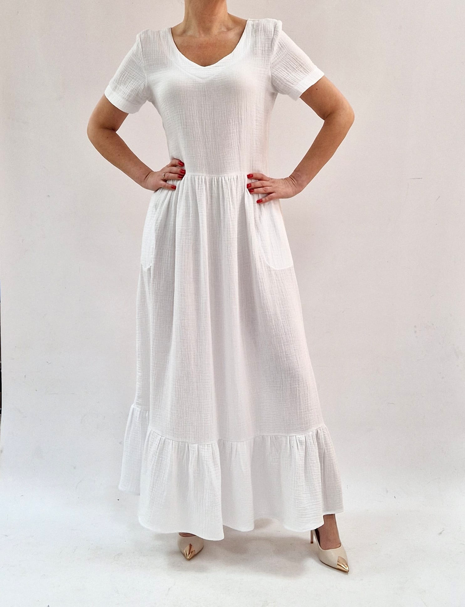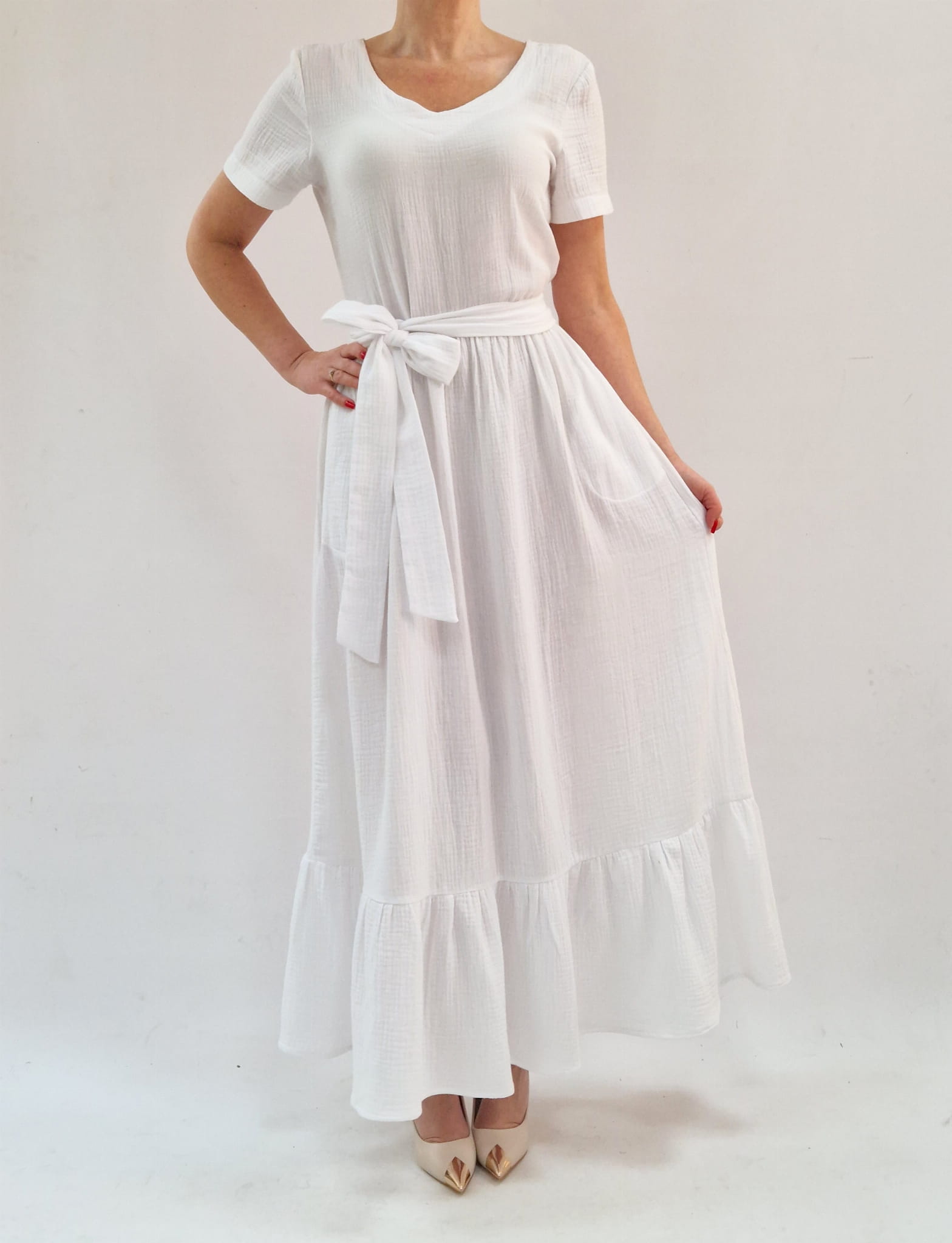 Bawełniana sukienka z muslinu maxi, kieszenie roz 36-56