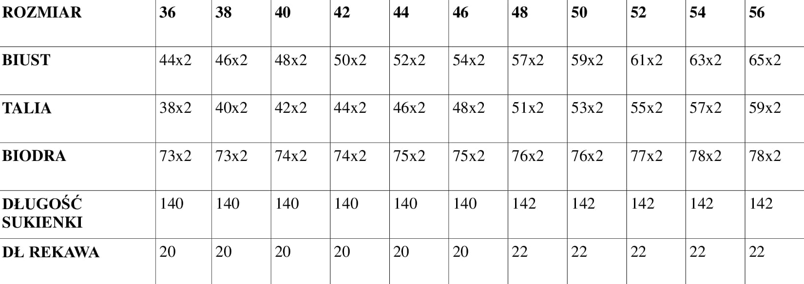 - ROZMIARÓWKA OD 36 DO 56