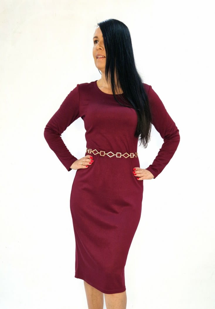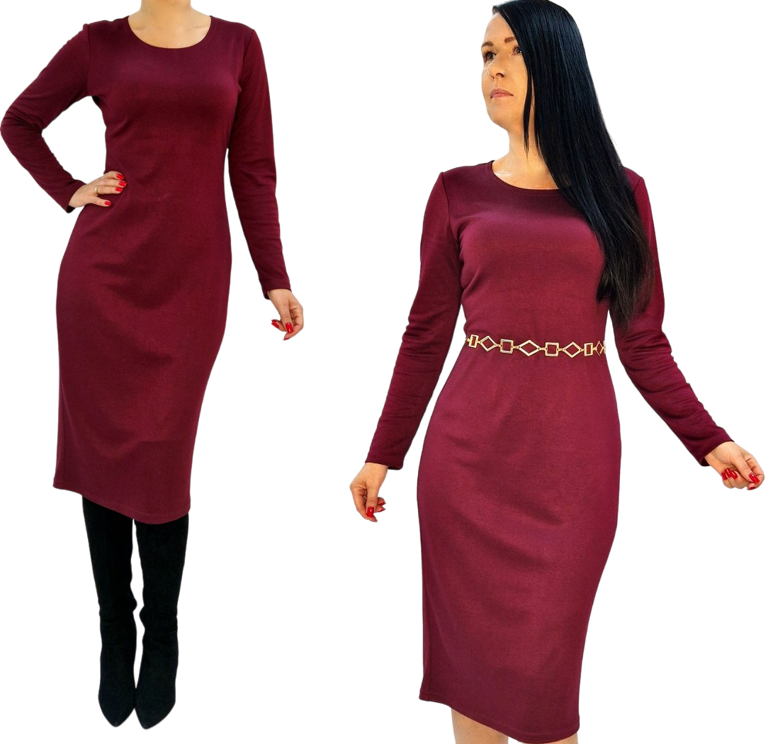 Bordowa sukienka midi wygodna dopasowana 36-56