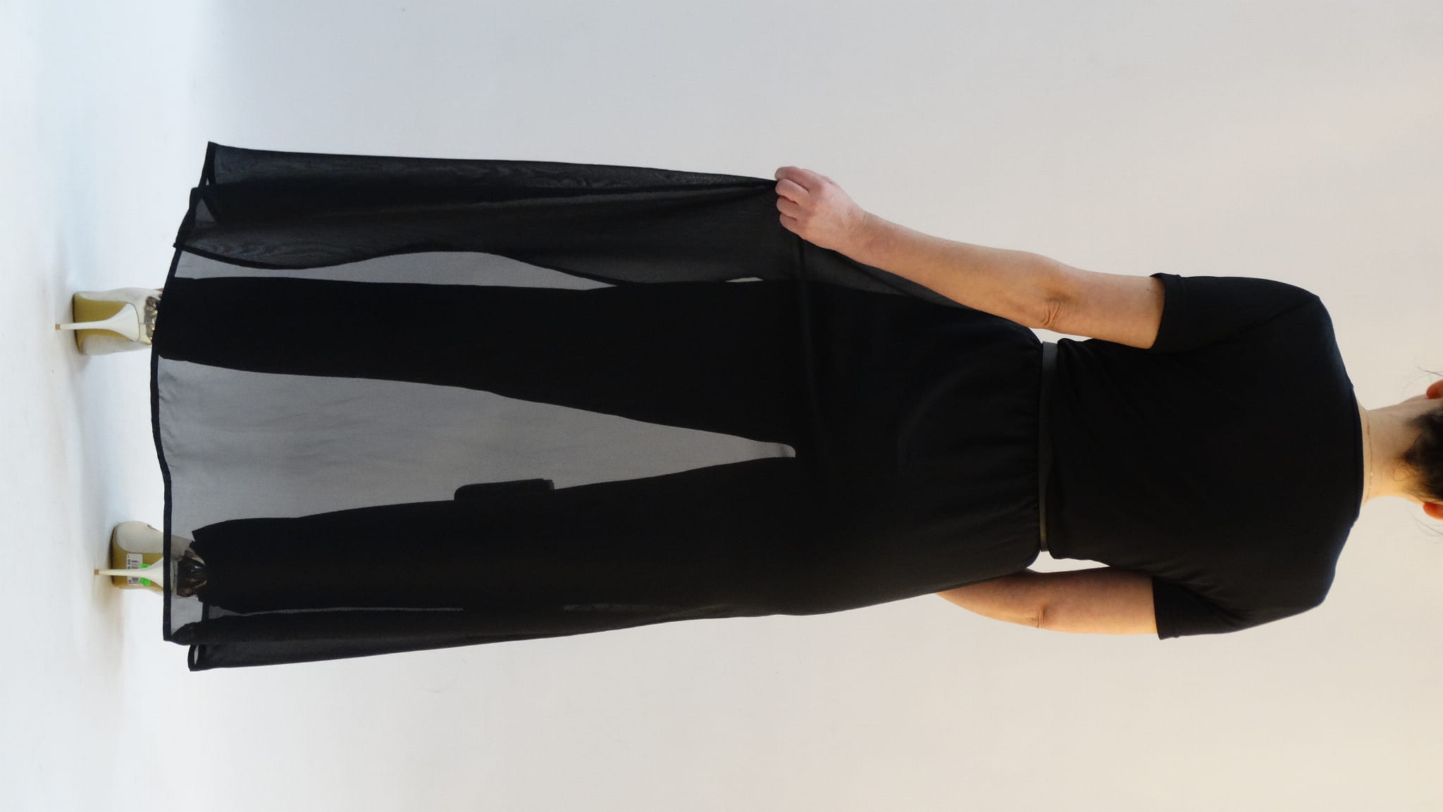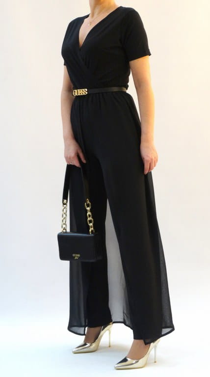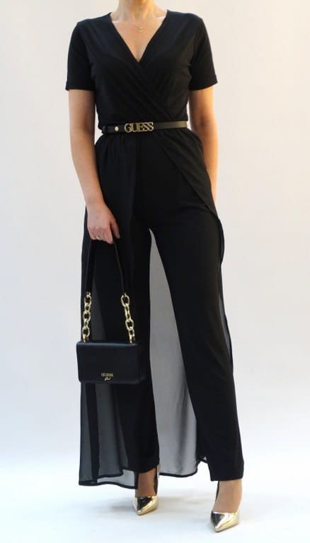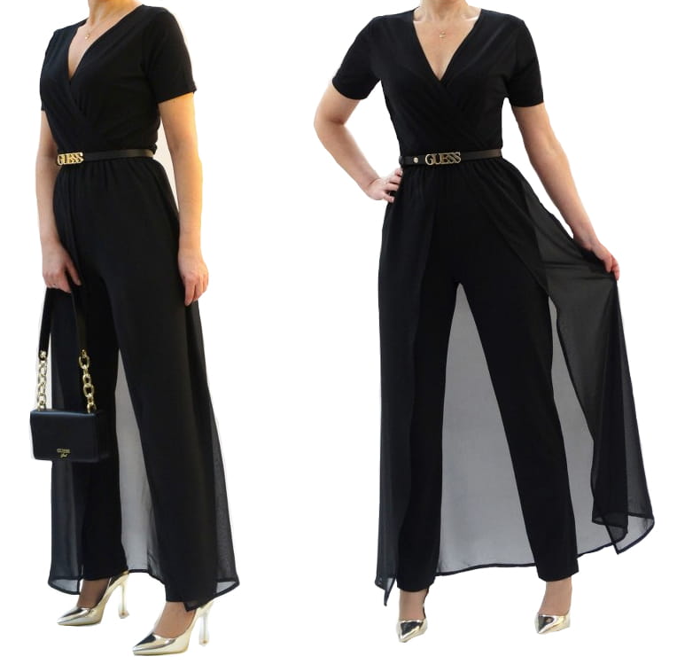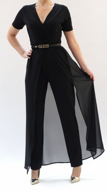 Czarny elegancki kombinezon damski z trenem r 34-52