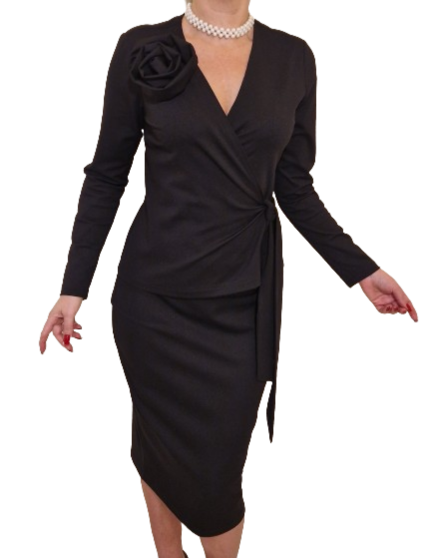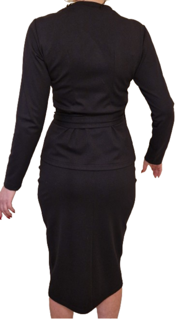 Elegancki czarny biznesowy komplet ze spódnica midi 36-56