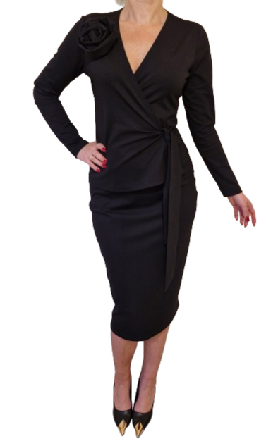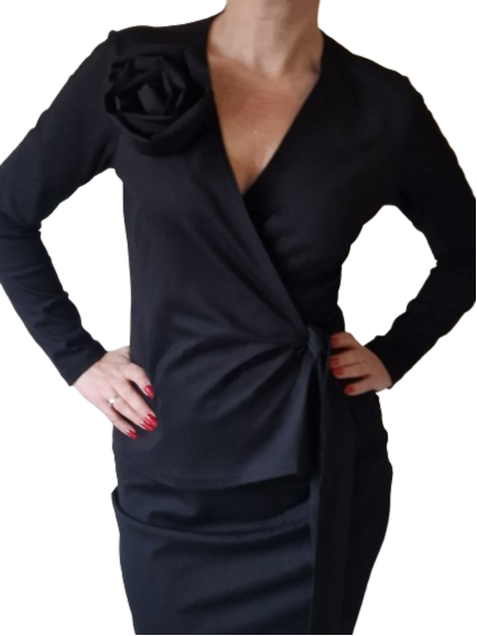 BLUZKA O KROJU KOPERTOWYM Z BARDZO MODNĄ APLIKACJA 3D W POSTACI RÓŻY