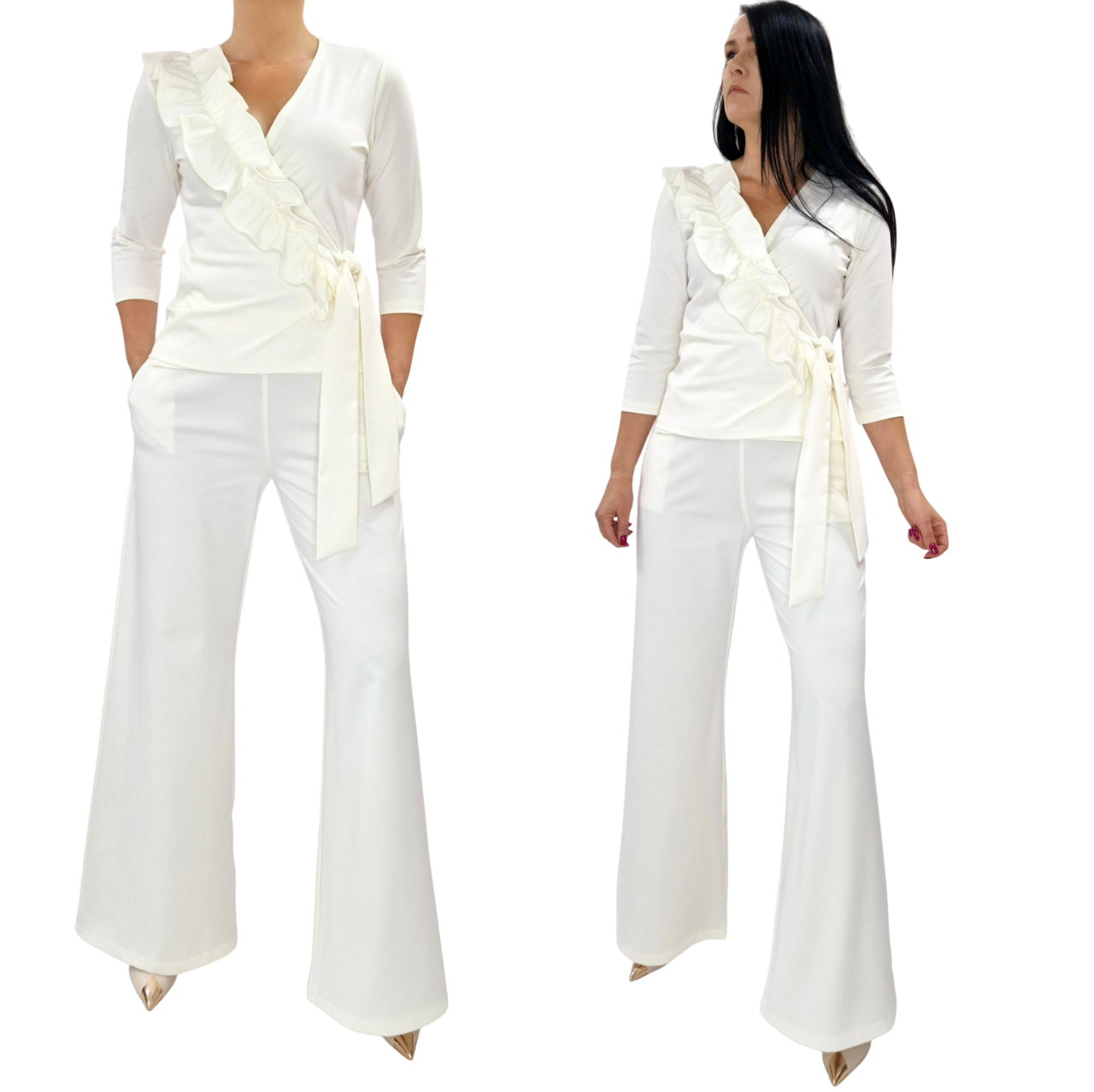 NASZ ZESTAW TO BLUZKA Z RĘKAWEM 3/4I SPODNIE z szerokimi nogawkami