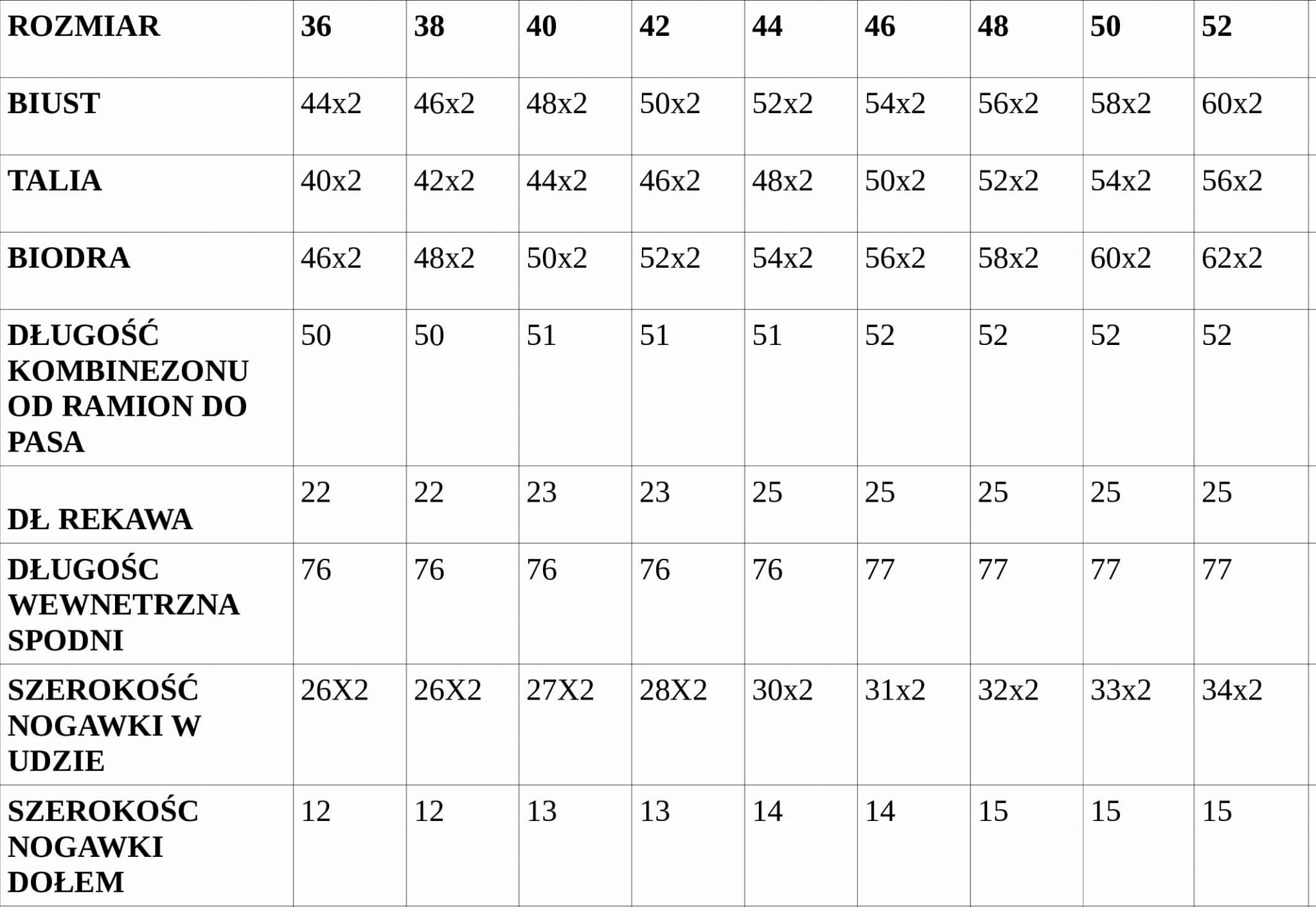 Tabela wymiarów kombinezonu dostępna w galerii zdjęc