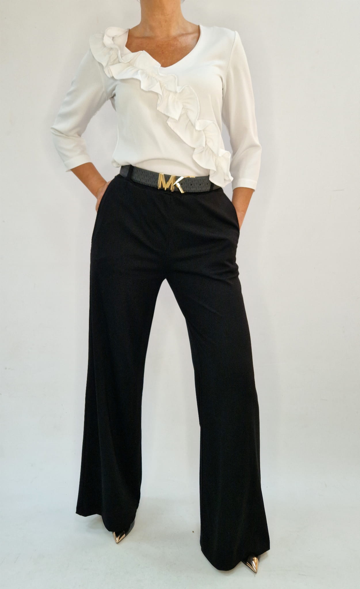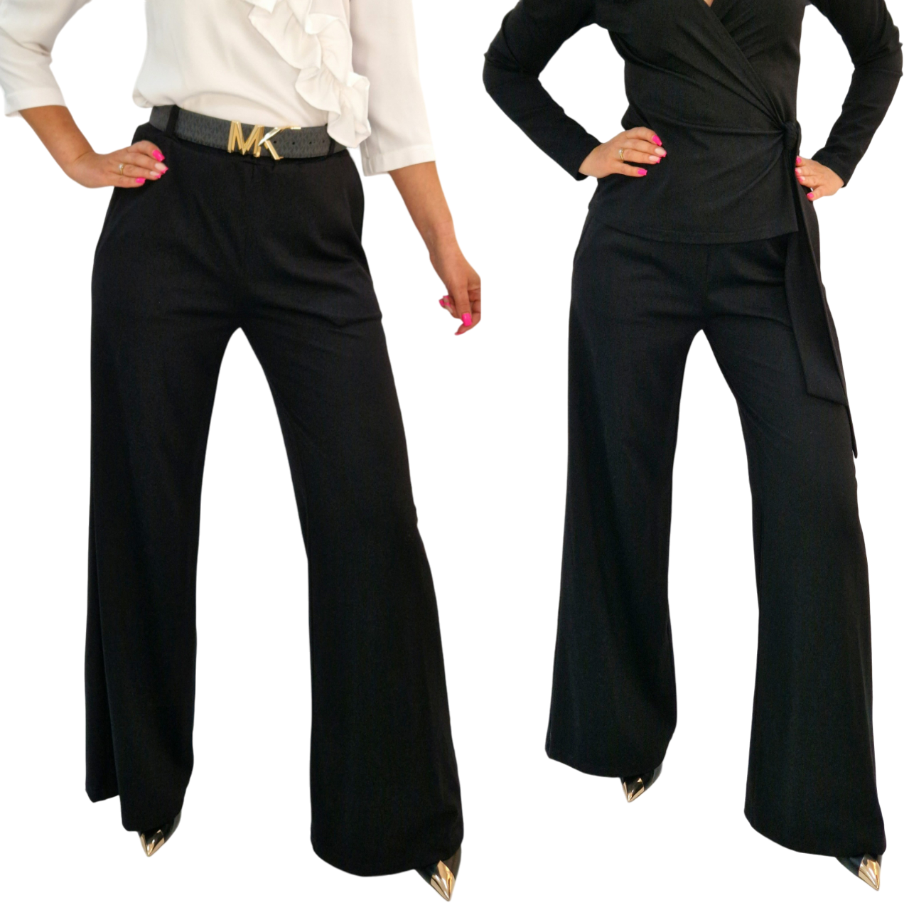 JEDEN Z NAJMODNIEJSZYCH FASONÓW SPODNI TEGO SEZONU.ELEGANCKIE SPODNIE DAMSKIE O FASONIE PALAZZO Z ROZSZERZANYMI NOGAWKAMI .
