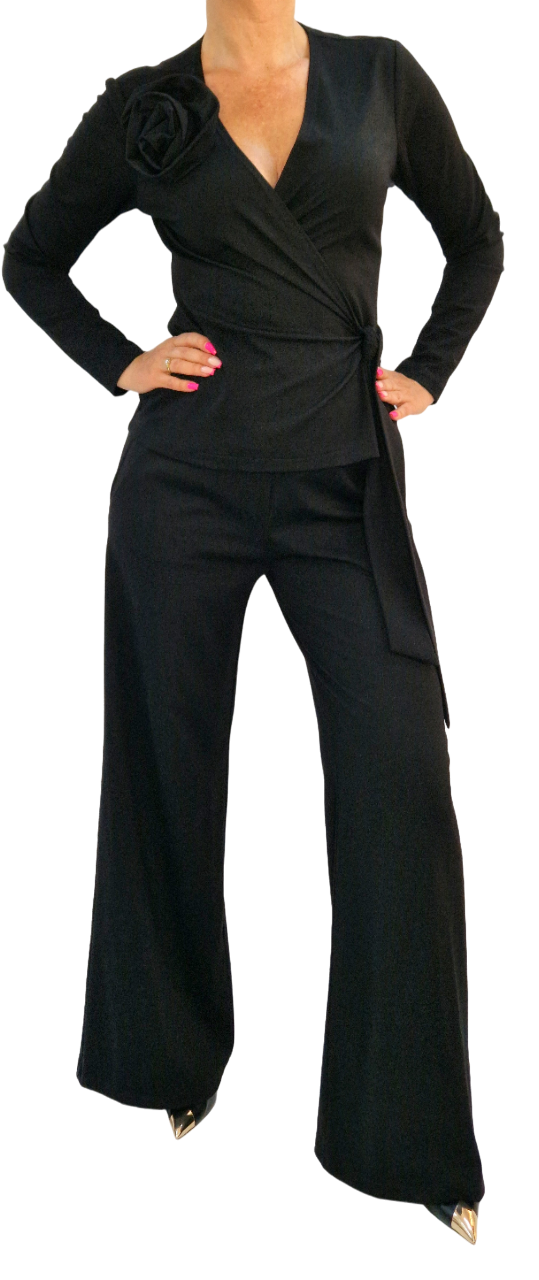 Eleganckie wygodne szerokie czarne spodnie palazzo ,kieszenie