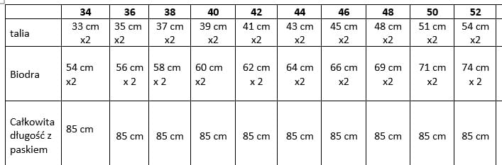 Wymiary spódnicy dla poszczególnych rozmiarów w tabeli - galeria zdjęć