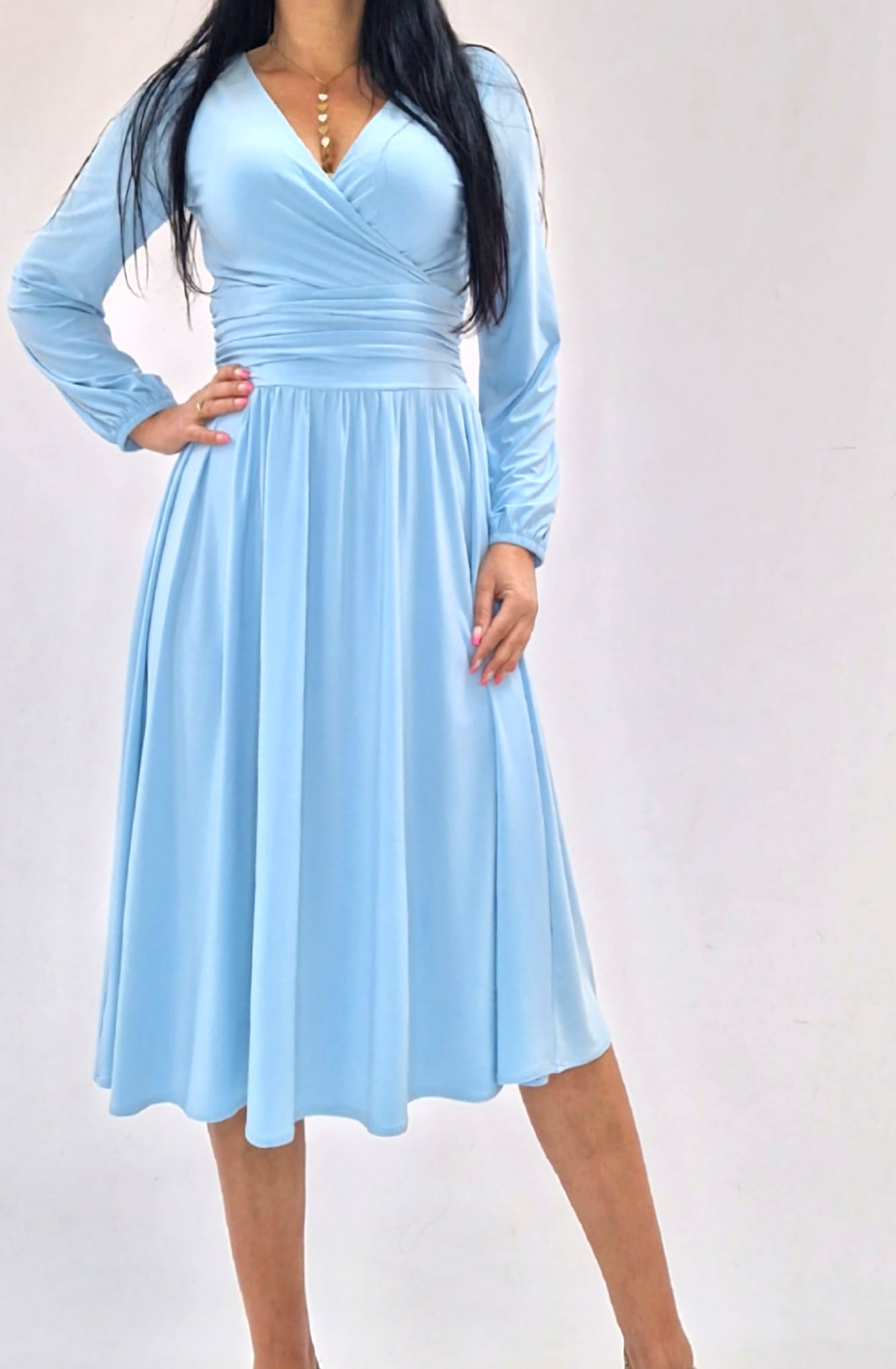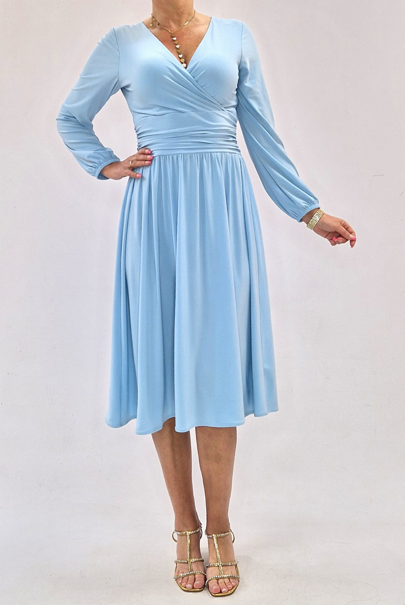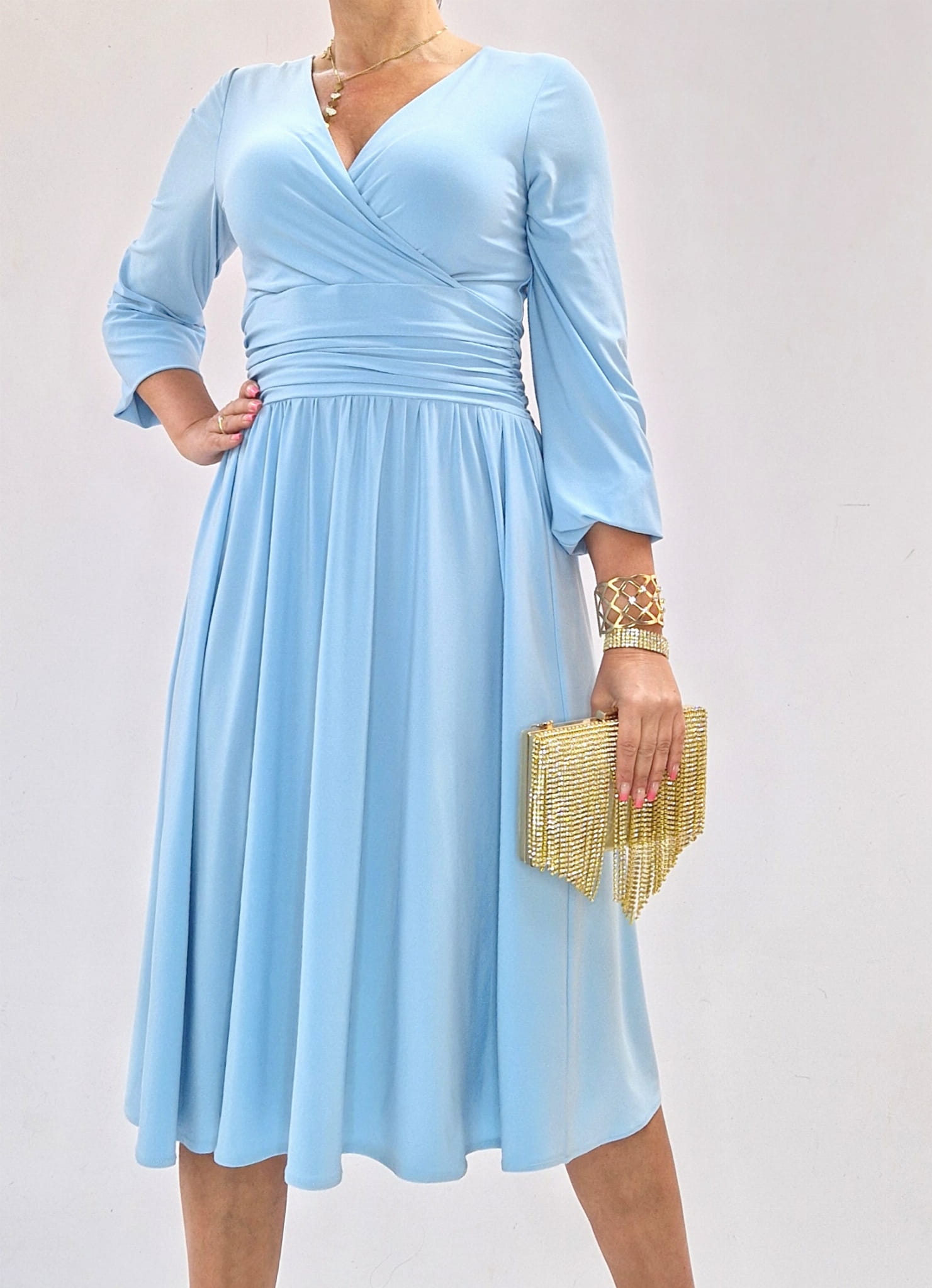 Sukienka elegancka midi błękitna kopertowa roz 34-56