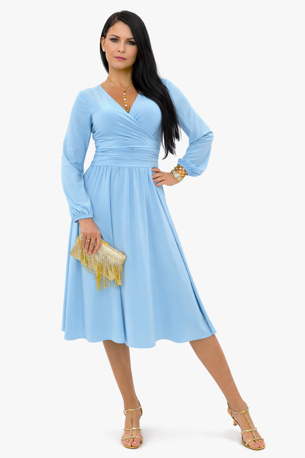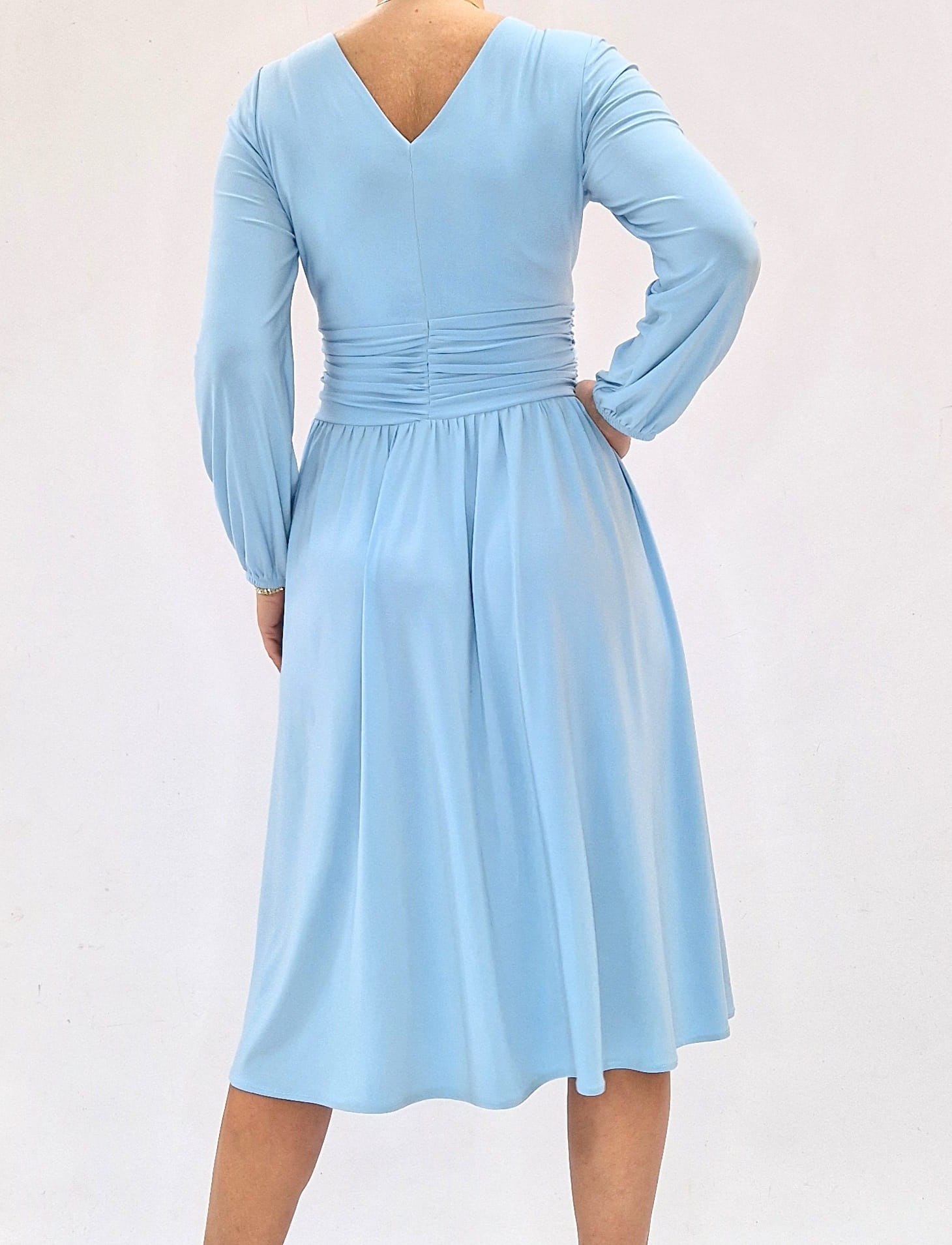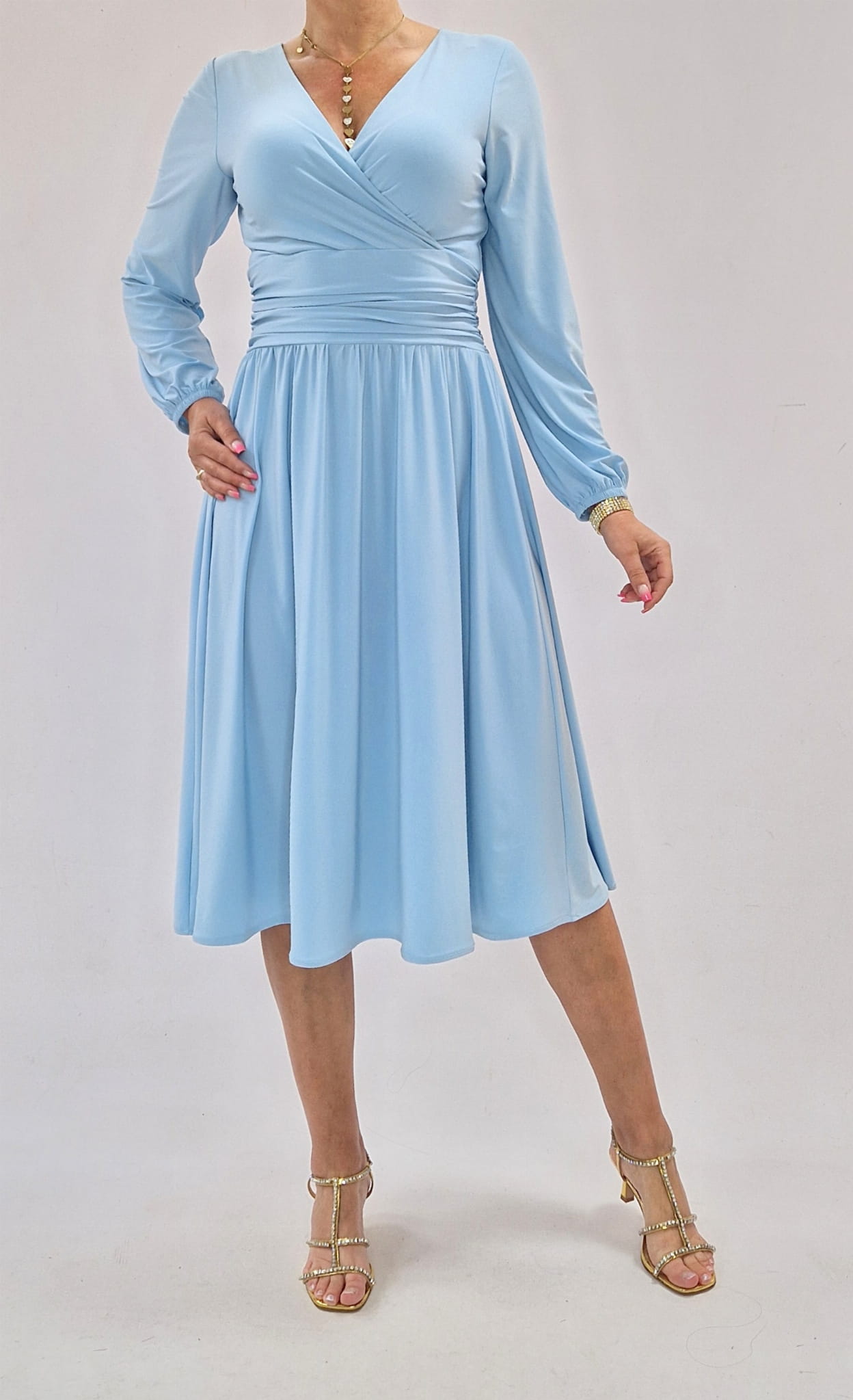 Sukienka elegancka midi błękitna kopertowa roz 34-56