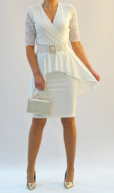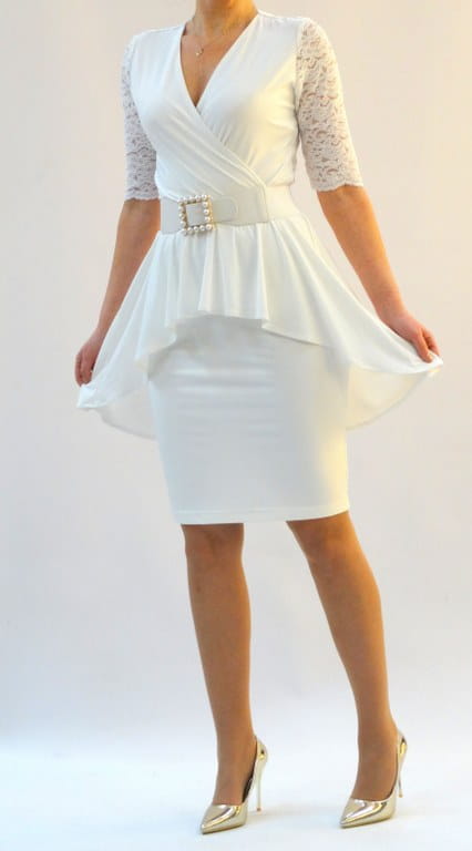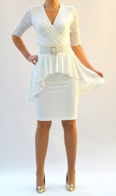 Sukienka elegancka z baskinką ecru na komunię wesele 34-56