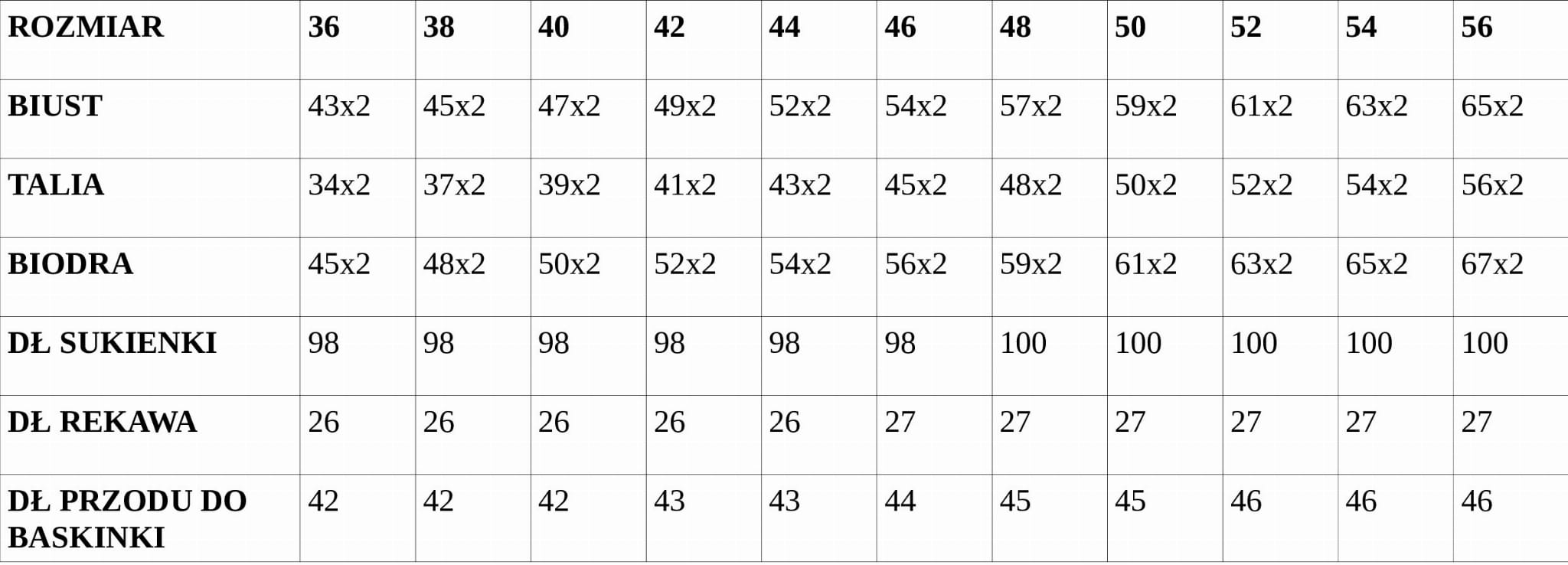 Wymiary dla poszczególnych rozmiarów znajdują sie w galerii zdjęc (tabela rozmiarów)