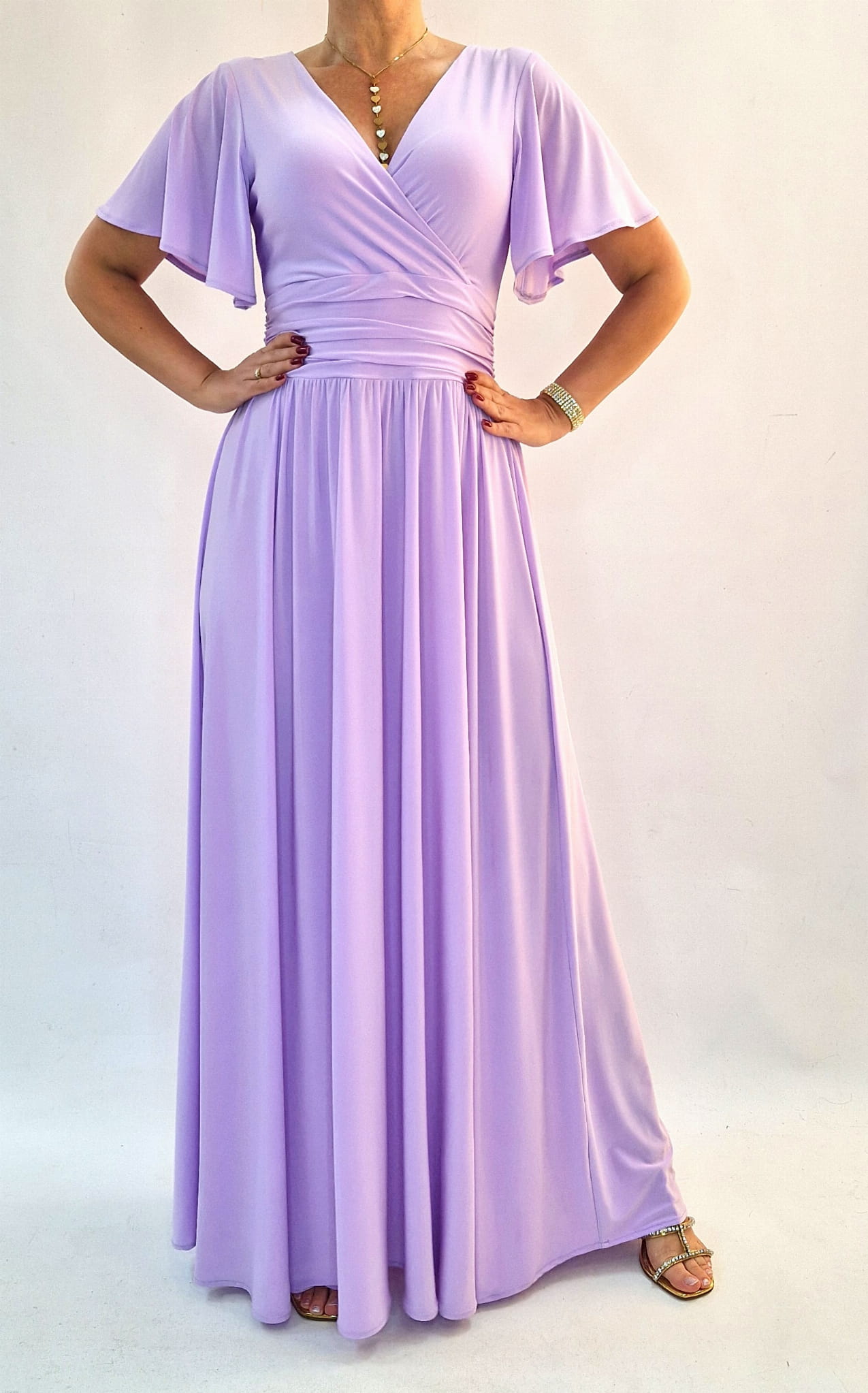Podkreśl swój wyjątkowy styl dzięki tej eleganckiej sukience maxi w kolorze lawendowym. To doskonały wybór na wesele, komunię, bal, studniówkę czy każdą wyjątkową okazję.