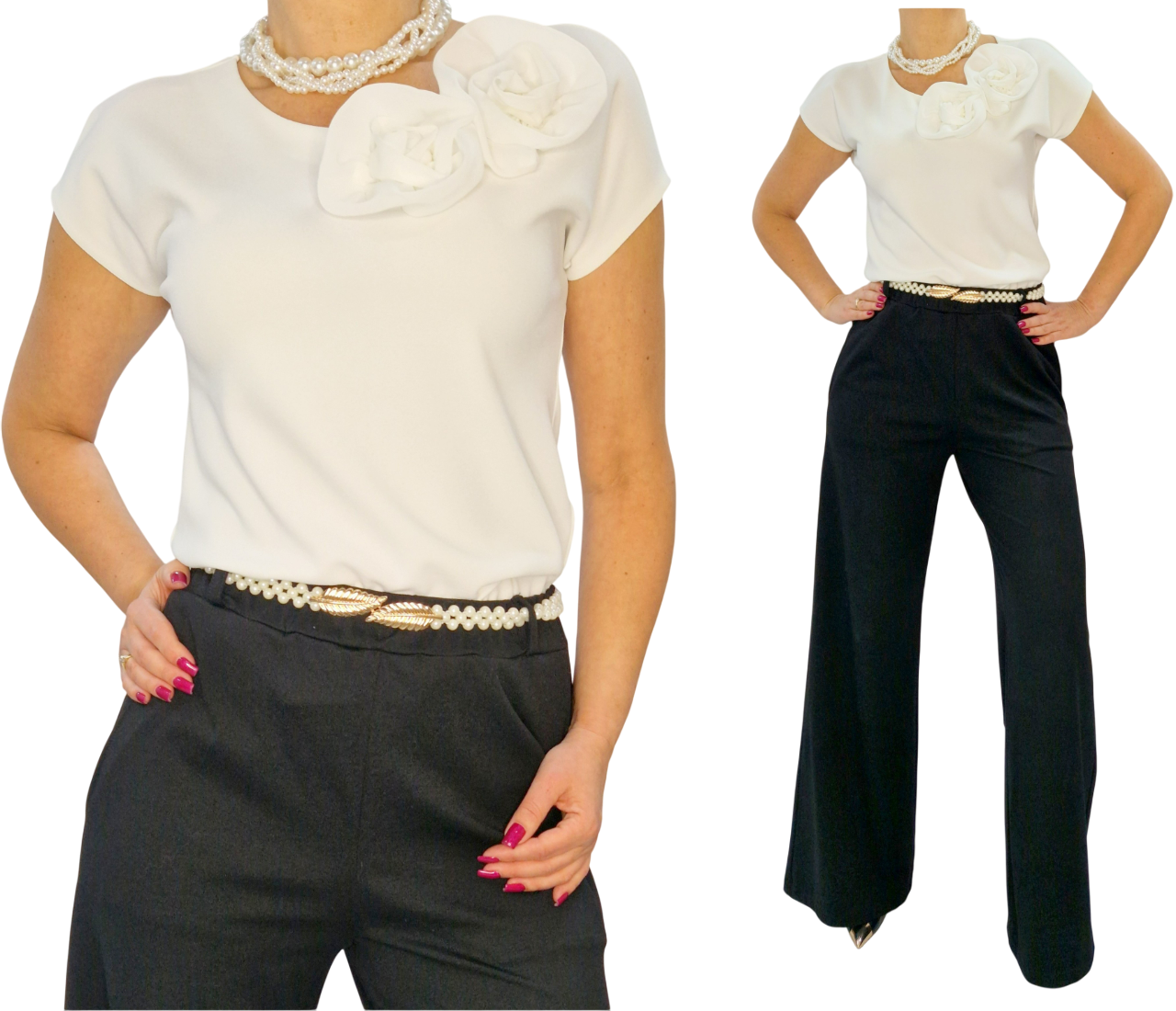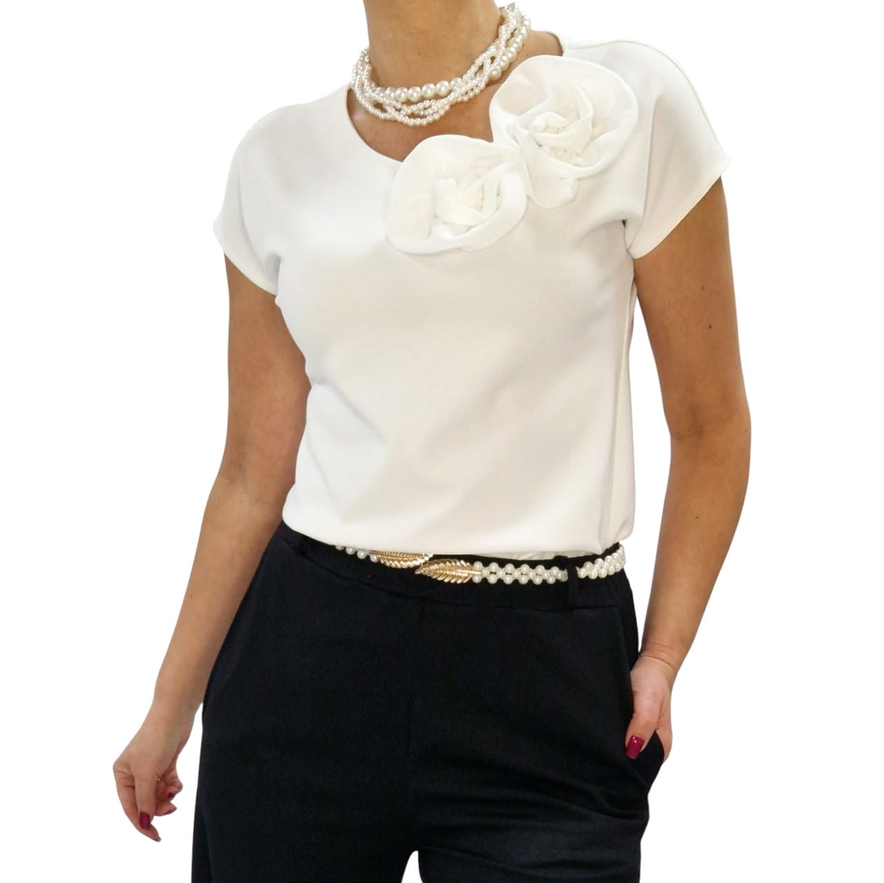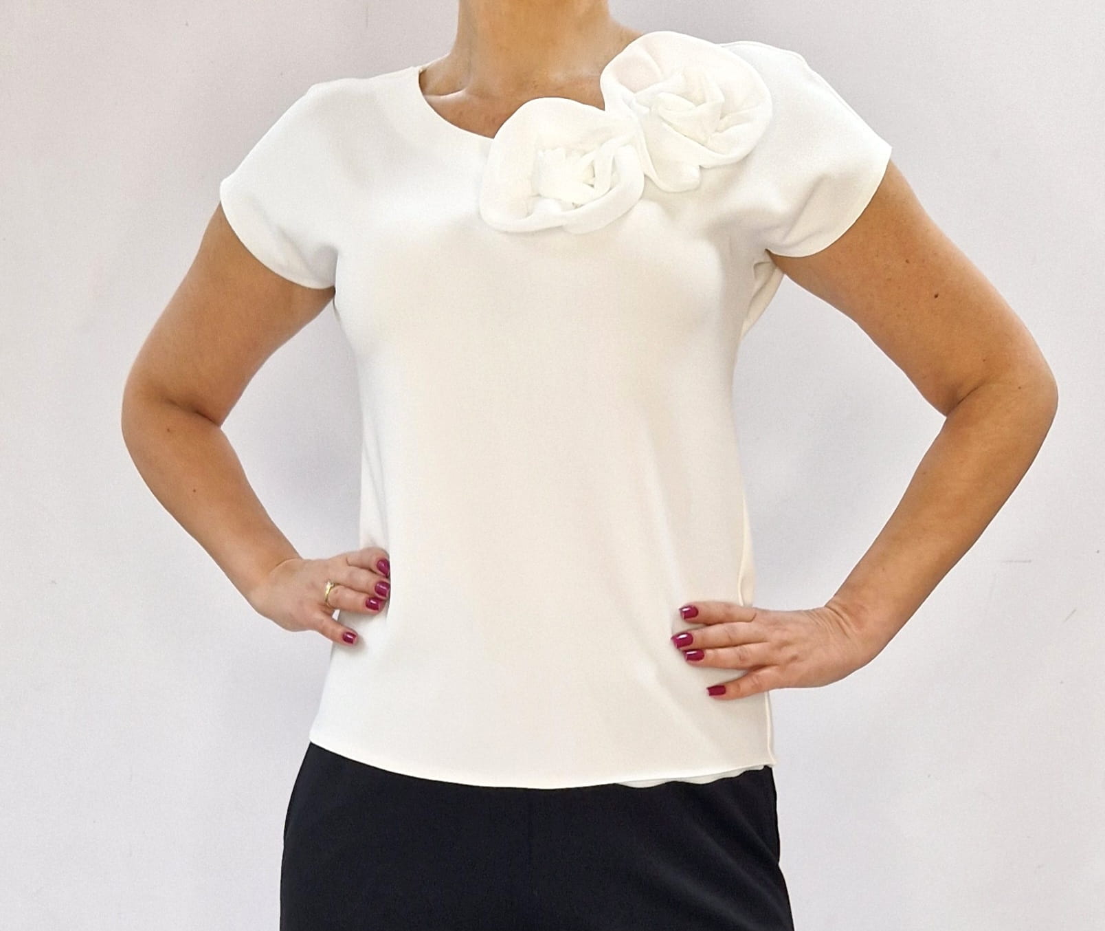 WIZYTOWA BLUZKA GLAMOUR Z RÓZAMI 3D