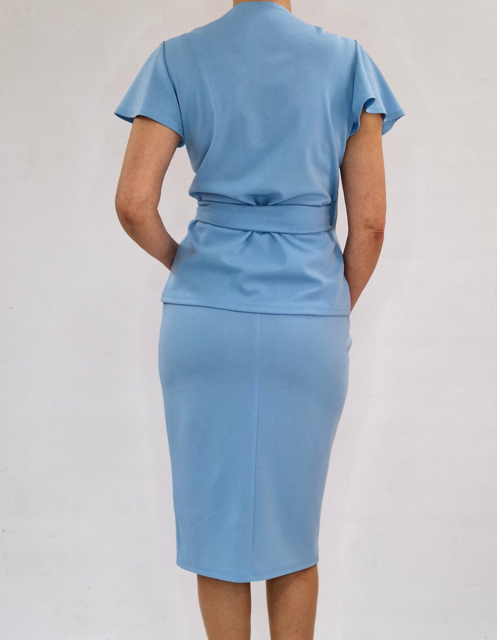 ELEGANCKI BŁEKITNY KOMPLET ZE SPÓDNICĄ